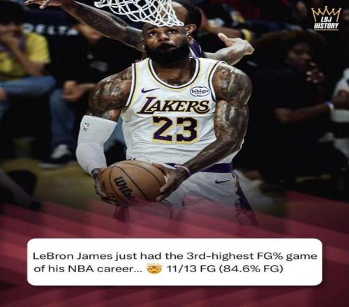 就在全明星投票話題熱議之際,湖人球星詹姆斯正迎來(lái)自己的41歲生日(當(dāng)?shù)貢r(shí)間12月30日)。在湖人主場(chǎng)125-101大勝國(guó)王的比賽中,這是詹姆斯40歲的最后一場(chǎng)比賽,他交出了極為高效的表現(xiàn)——上場(chǎng)29分鐘,13投11中,三分2中1,罰球1中1,砍下24分3籃板5助攻2搶斷,正負(fù)值+20,84.6%的命中率不僅創(chuàng)下效力湖人時(shí)的新高,也是其個(gè)人職業(yè)生涯第三高。