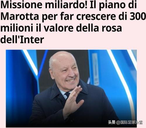 辭舊迎新之際,《米蘭體育報(bào)》以“10億歐元的使命”為題,指出:橡樹資本給馬洛塔的任務(wù),是讓國際米蘭的價(jià)值——也就是球員的總價(jià)值提升3億歐元,達(dá)到十位數(shù)歐元。