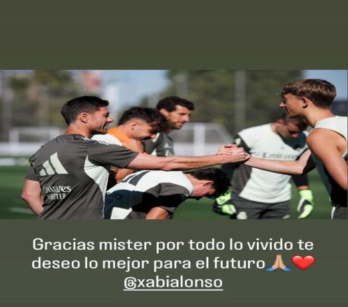 在哈維-阿隆索離任后,皇馬后衛赫伊森在社交媒體發布了一張他和阿隆索在訓練場握手的照片,并寫道:“感謝你帶給我們的一切經歷,教練,祝你未來一切順利 ??”
